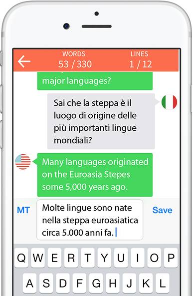 Stepes 作为人工翻译平台,客户将想要翻译的文档上传到平台上,基于语言能力和行业背景而划分的专业译员,即可收到待翻译的文档进行工作。译员可通过手机等移动设备在聊天对话框中看到被切分后的源语言文件,并可左右滑动界面查看源文件内容与已翻译内容。翻译结束后,客户即可对翻译内容进行检查,并根据翻译结果对译员进行打分。正如 Uber 打车软件一样,译员获得的评分越高,后续取得的翻译项目的几率也就越高。